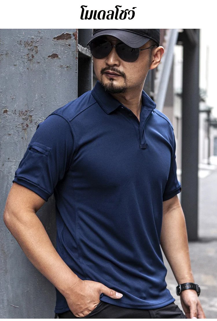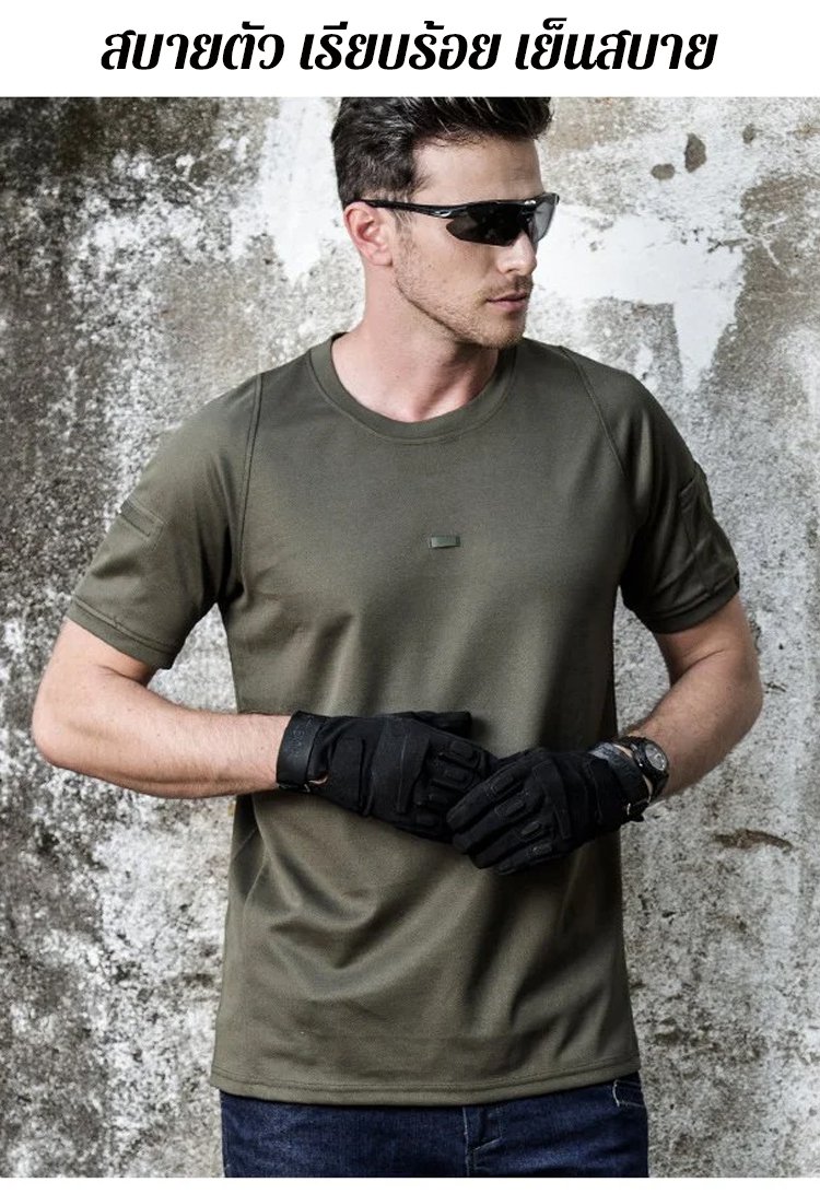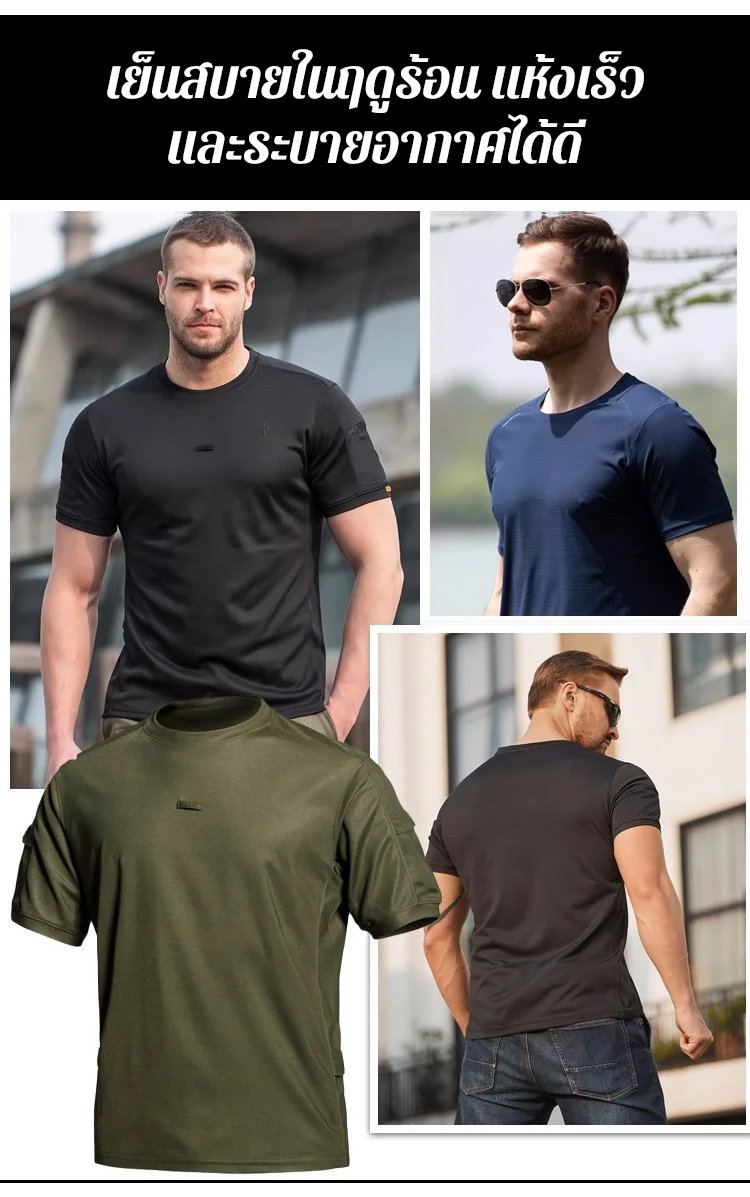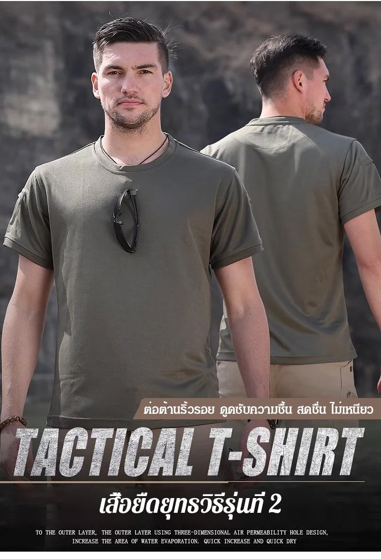 เสื้อยืดแขนสั้นผู้ชาย แบบยุทธวิธี กันแดด ระบายอากาศได้ดี